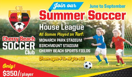 Summer House League Game 1x/week ($350) or Basic Development Skills/Drills 1x/week ($350) or House League/Development Combo 2x/week ($650) plus credit card service fee. Outdoor soccer begins the week of June 2nd.